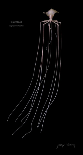 Хадальная зона — самые глубокие недра океана 6000 м – 11000 м (самая низкая точка Марианской впадины), и здесь живёт самый устрашающий кальмар — *Magnapinna*. Науке даже неизвестно, чем он занимается, но известно, что его размер начинается с 6 метров.