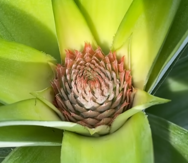 В течение года он ухаживал за растением, менял почву и оно стало высотой в 40 сантиметров. Вторая зима не прошла без проблем - растение начало шататься, но опора спасла ситуацию. На третий год жизни ананас начал цвести.