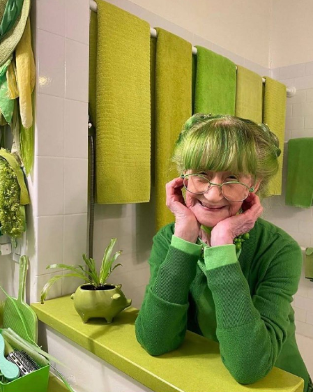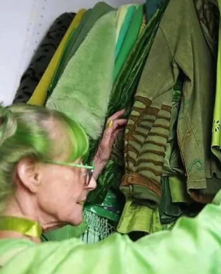 Художница Элизабет Итон Розенталь уже четверть века одевается исключительно в зелёный — за что получила прозвище «Зелёная леди Бруклина».
