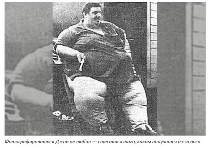 Самый тяжелый человек в мире родился 29 сентября 1941 года. Тогда, конечно, никто не догадывался, что он станет таким тяжеловесом — родители у него были вполне обычные. Отец работал машинистом. Он умер от сердечного приступа, когда Джону был 21 год. Мать была телефонным оператором и пережила сына на три года. К 12 годам Джон набрал ошеломительные 133 килограмма. Было очевидно, что у мальчика проблемы со здоровьем. Но у врачей не получалось ни установить их причину, ни помочь пациенту. Джона всю жизнь сажали на жесткие диеты. Однако победить аномальный обмен веществ так и не получилось. К 21 году парень весил уже 178 килограммов — явный перебор даже при росте под 190 сантиметров. К 25 годам – 318 кг, а спустя еще 10 лет — 442 кг, как среднестатистический самец белого медведя.