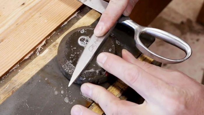 Угол заточки задается на заводе и его нельзя изменять в процессе использования ножниц. Именно в этом в большей степени заключается мастерство затачивания данного режущего инструмента по всей длине лезвия.