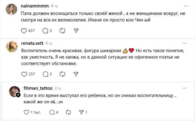 Так можно в детский сад или перебор? 07/01/2026 22:00 На утреннике в одном из детсадов папы обратили внимание на слишком эффектную воспитательницу. Фото ушло в сеть — и понеслось: одни в восторге, другие спорят, уместен ли такой образ рядом с детьми. Главная / Картинки 0 Admin 1 132