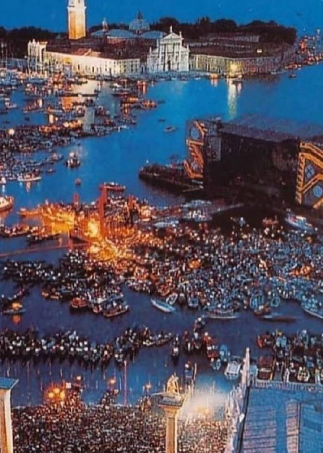 15 июля 1989 года Венеция стала сценой для одного из самых спорных концертов в истории группы. Pink Floyd выступили бесплатно — прямо на плавучей платформе в лагуне рядом с площадью Сан-Марко. Красиво, громко и с массой споров после.