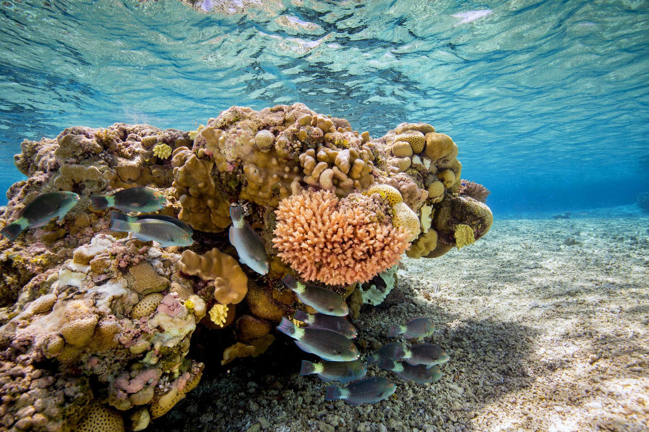 Рыбы собираются вокруг кораллов в лагуне, окружающей морской национальный памятник и национальный заповедник Роуз Атолл, самый восточный остров Американского Самоа. (Фото Ian Shive / Planet Pix / ZUMA Wire):