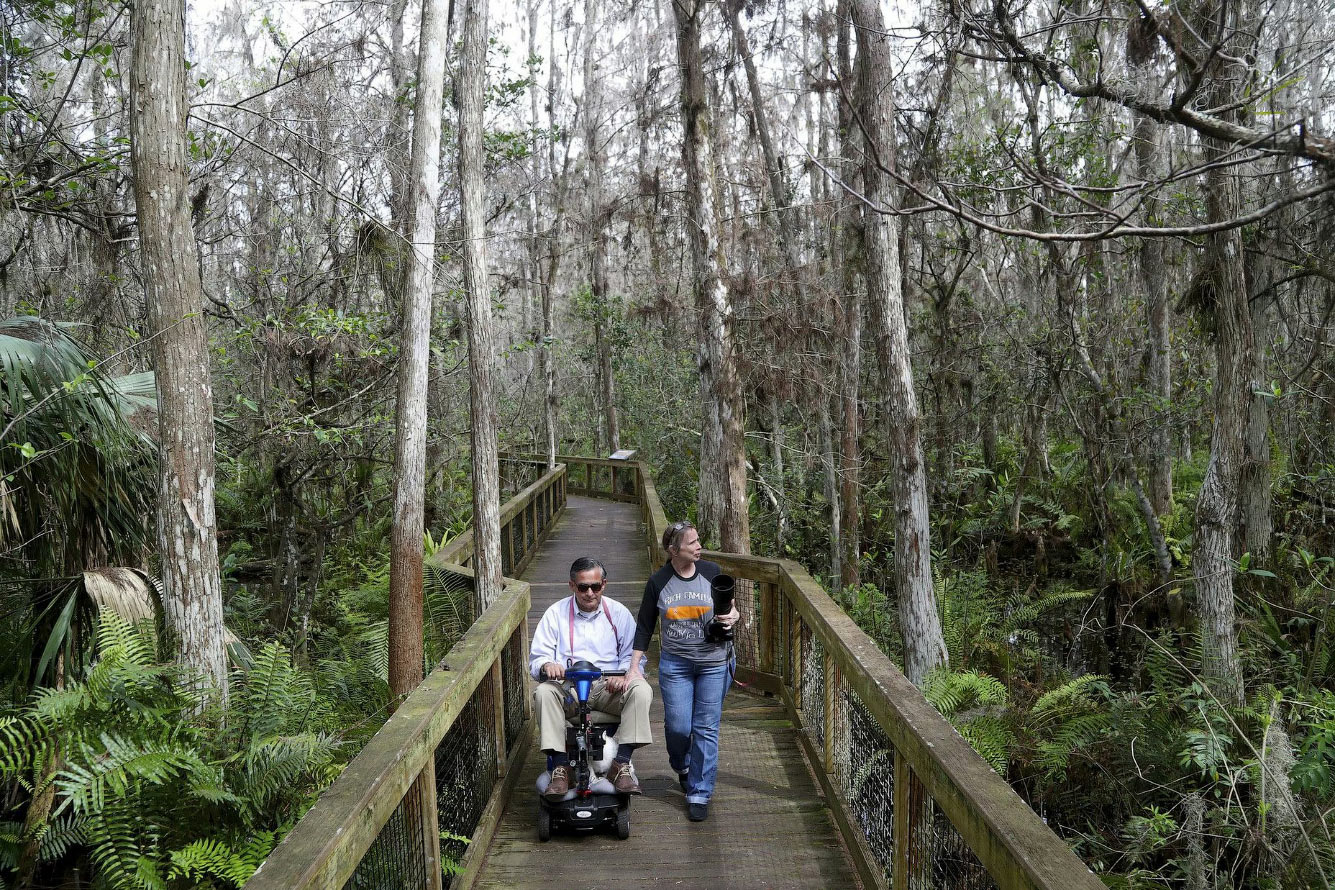 Филл и Элизабет Фриас прогуливаются по набережной Сайпресс-Суомп в Национальном заповеднике дикой природы имени Артура Р. Маршалла Локсахатчи в округе Палм-Бич, штат Флорида. (Фото Susan Stocker):