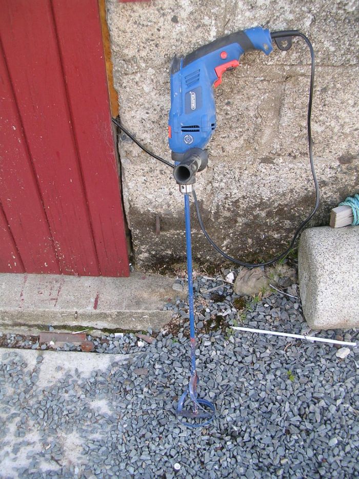 Перемешивать удобно строительным миксером с дрелью, но можно и вручную.