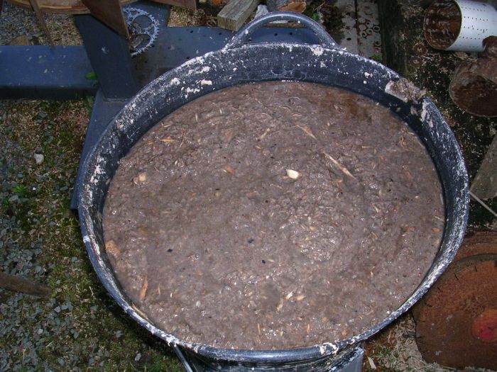 Брикеты состоят из двух основных компонентов: 2 части опилок и 1 часть бумаги. В отдельной емкости замачиваются опилки, бумага, картон и т.д. Их можно даже не измельчать, и лучше всего оставить на несколько дней, полностью покрыв водой. Лучше использовать горячую воду.