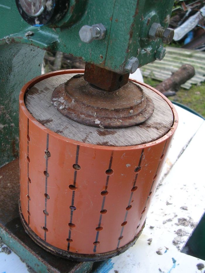 Форма для брикетов задается индивидуально, исходя из размеров топки вашей печи. Разумнее всего использовать металл, канализационную трубу из чугуна, или стальную, поскольку запрессовка даже от руки скажется на целостности ее формы. Главная ее особенность – это отверстия под выделяемую влагу после отжима. Интервал для них произвольный, а вот диаметр нужно сделать таким, чтобы через них не вылезал компост во время прессования (достаточно 4-5 мм).