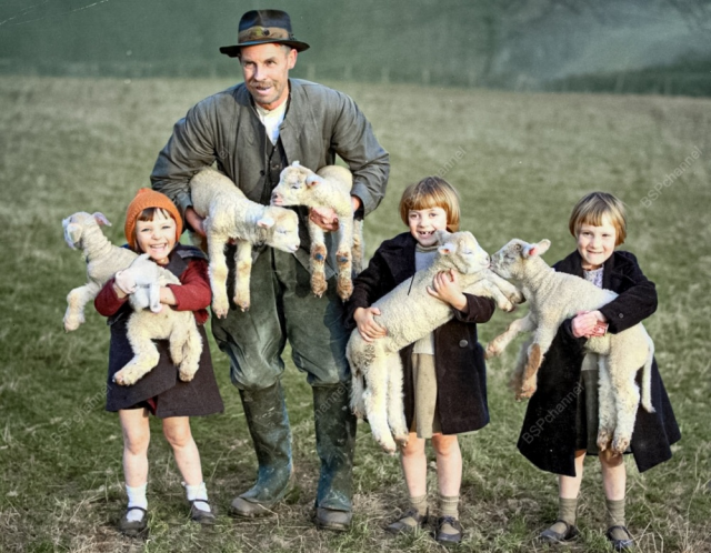 10. Эвакуированные из Лондона дети на ферме в Сассексе очарованы первыми ягнятами года в новогодний день. 1 января 1940 года.