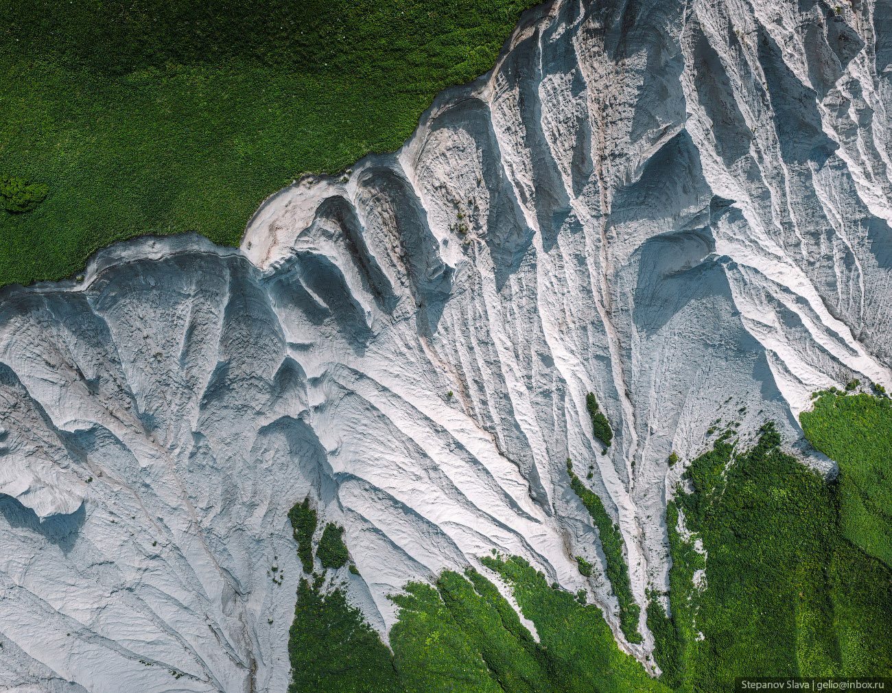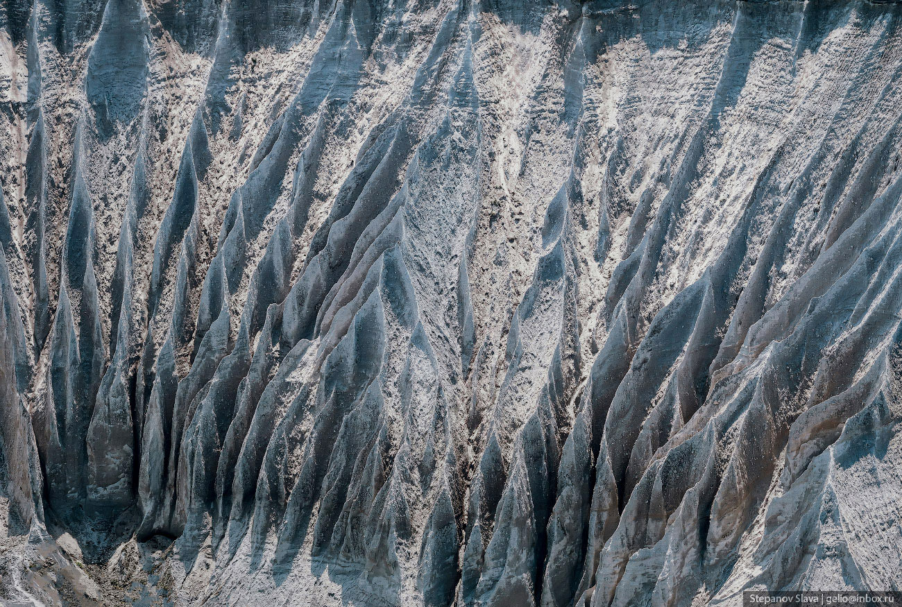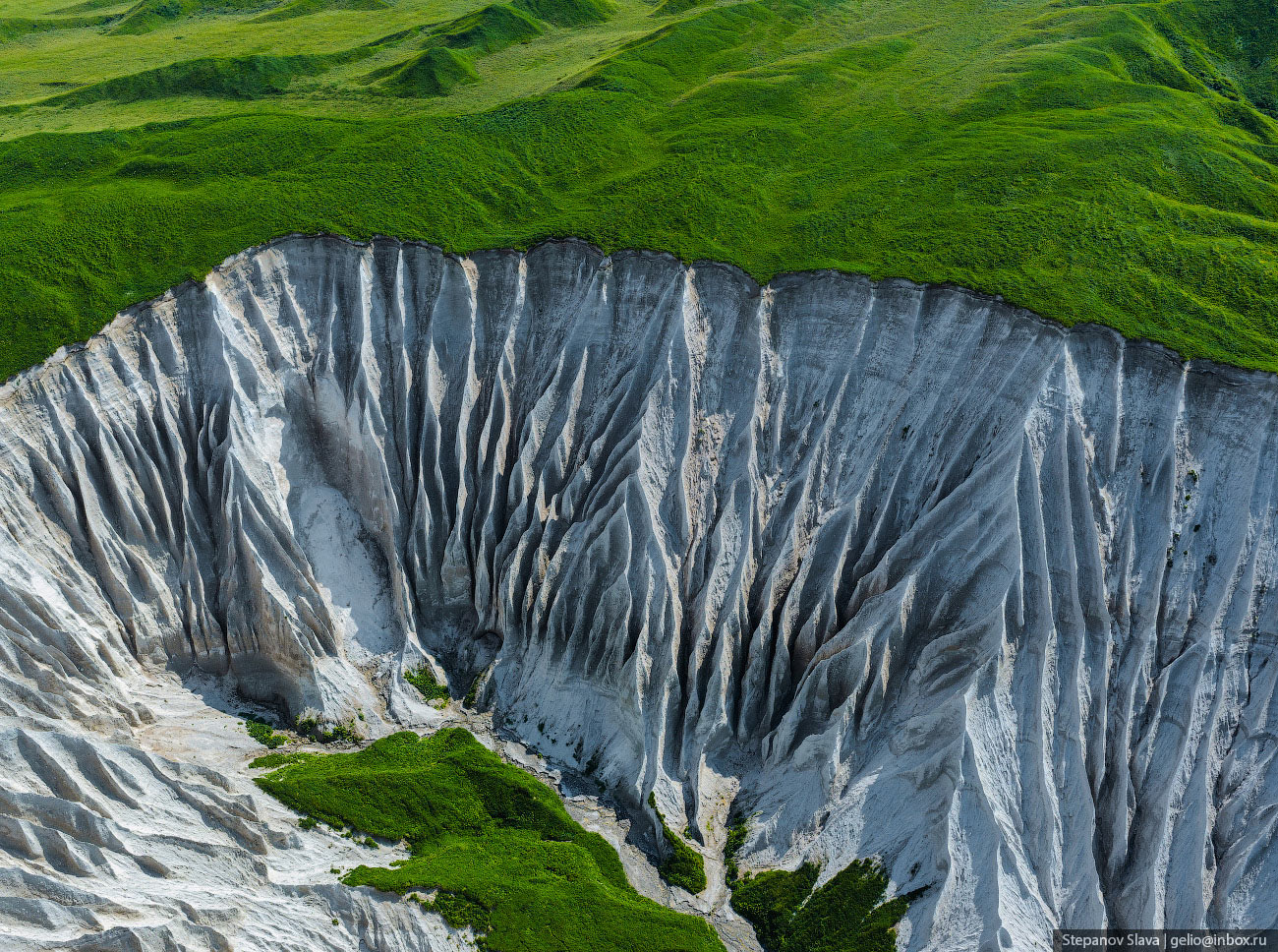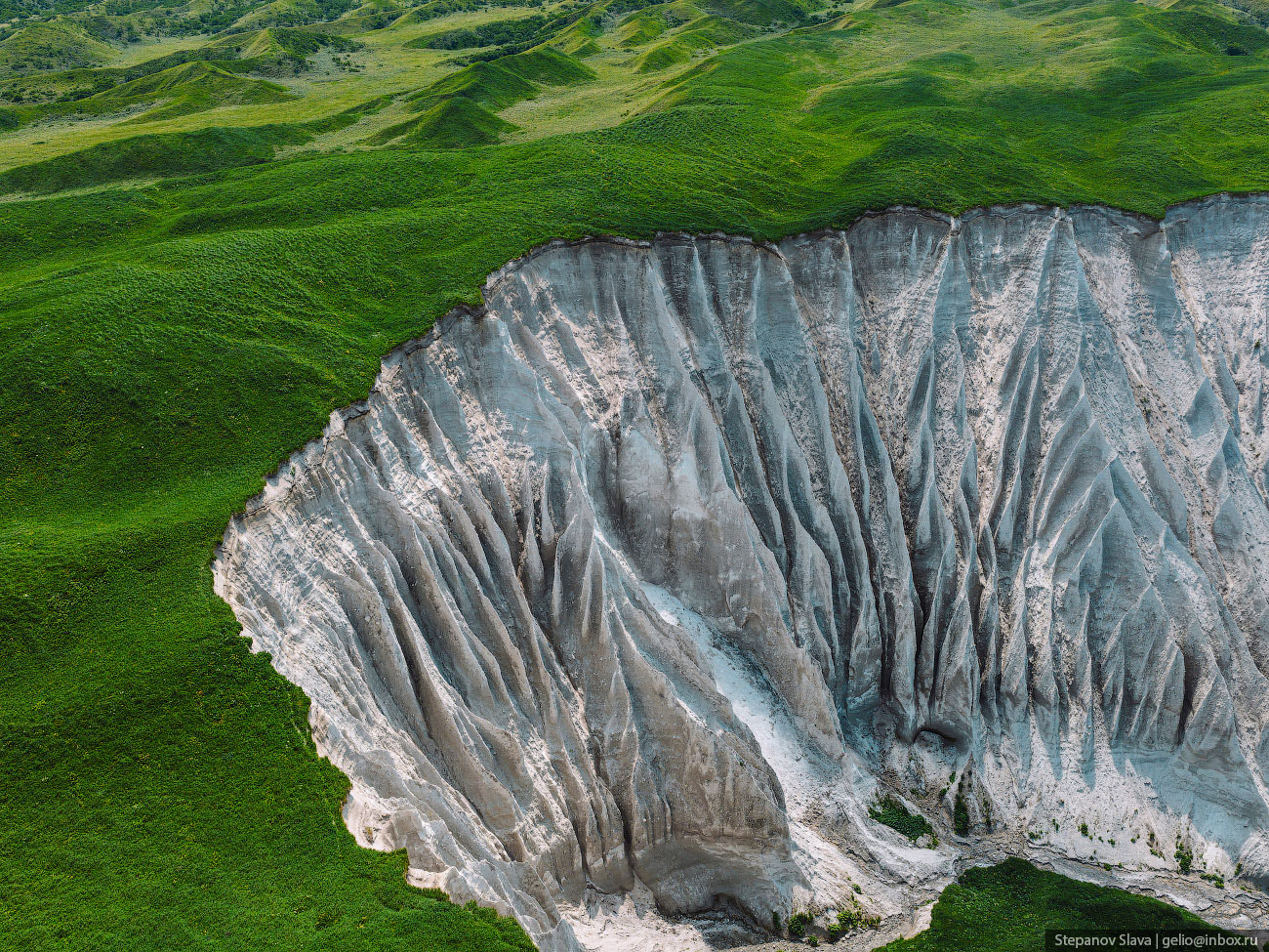 5. Белые скалы состоят из пемзы и вулканического стекла — эти хрупкие породы легко деформируются, поэтому на склонах появилось множество ущелий и каньонов.