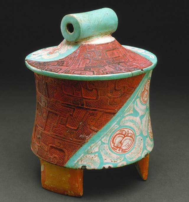 10. Треногий сосуд с изображением белых лилий. Цивилизация майя, 300–600 гг. н.э.