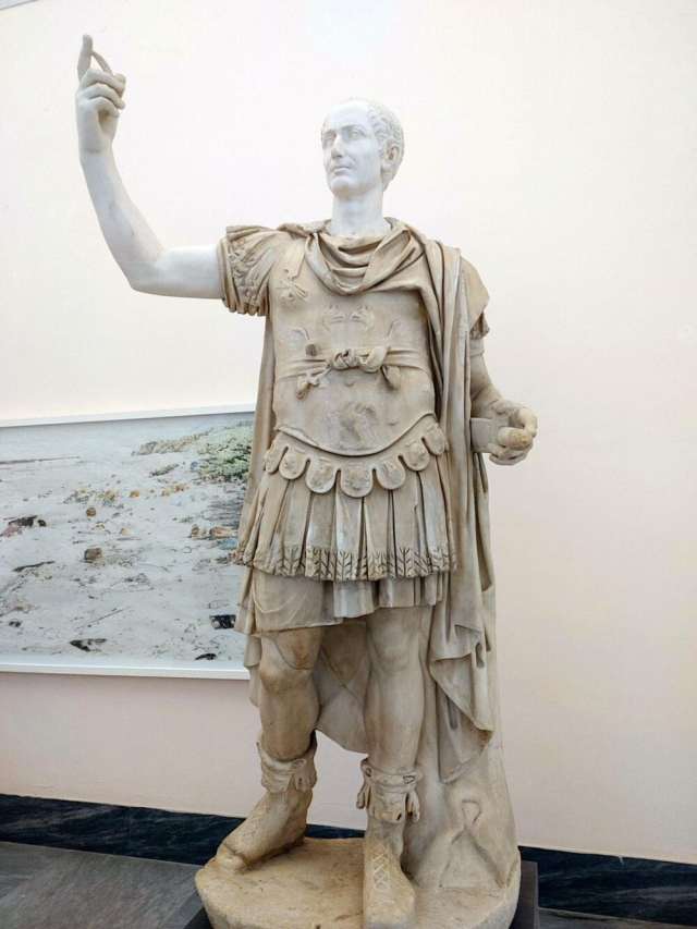 13. Римская скульптура, изображающая человека в военной форме, с современной головой Юлия Цезаря
