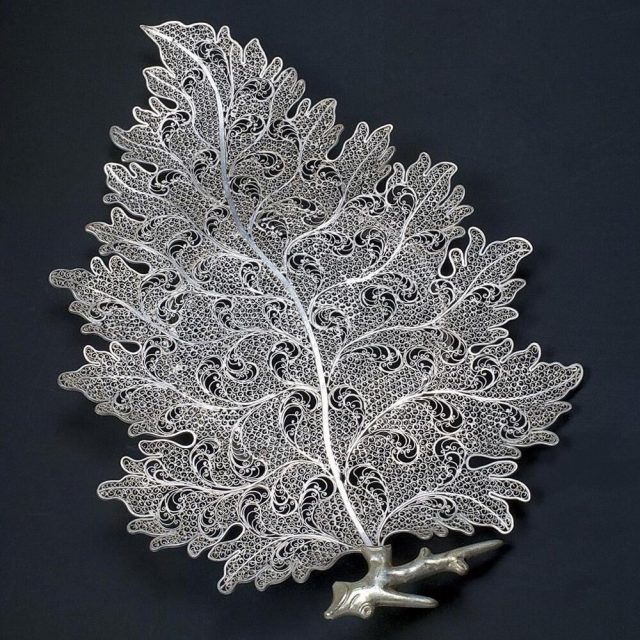 15. Серебряное филигранное блюдо в форме листа. Китай, 1740-1750 гг.