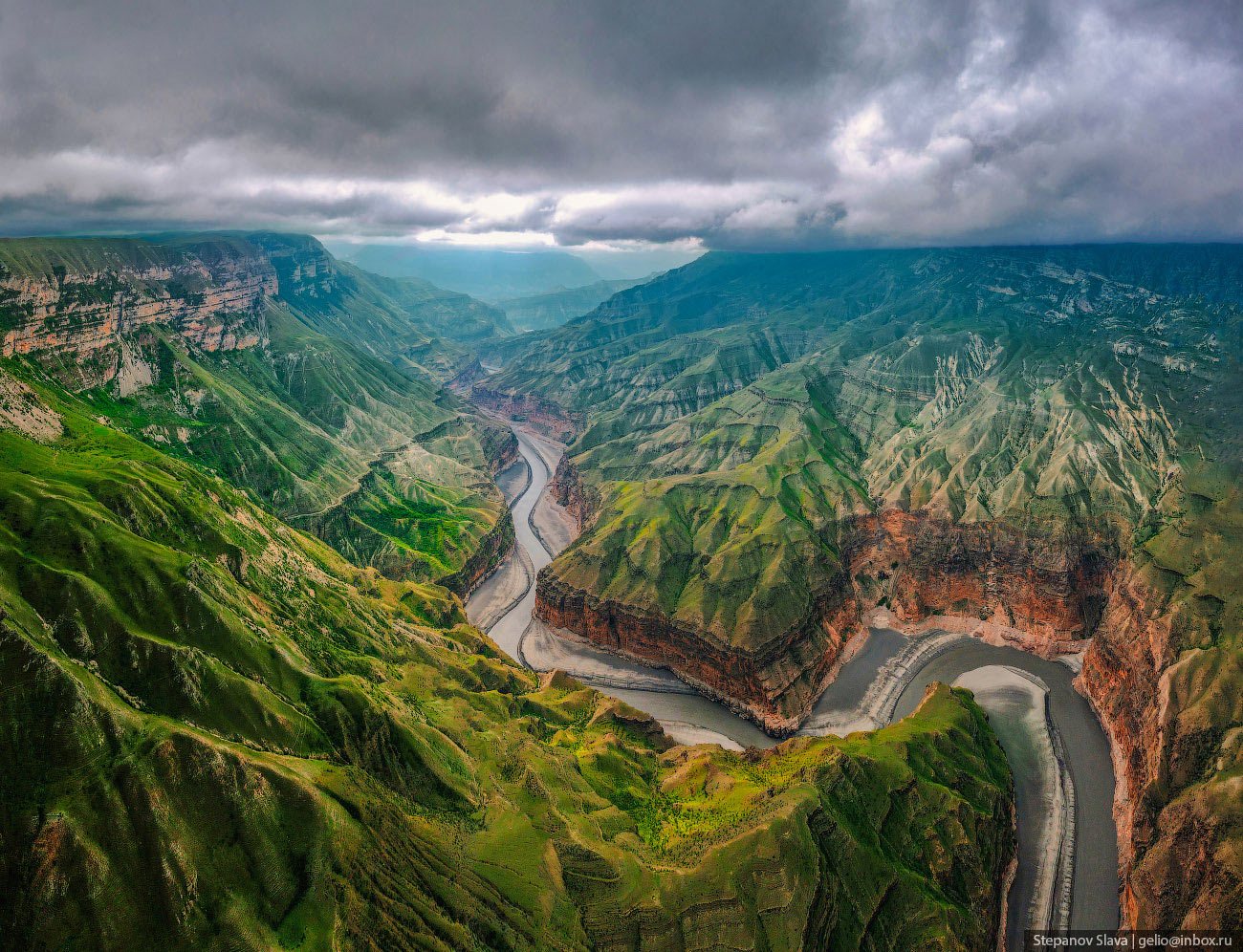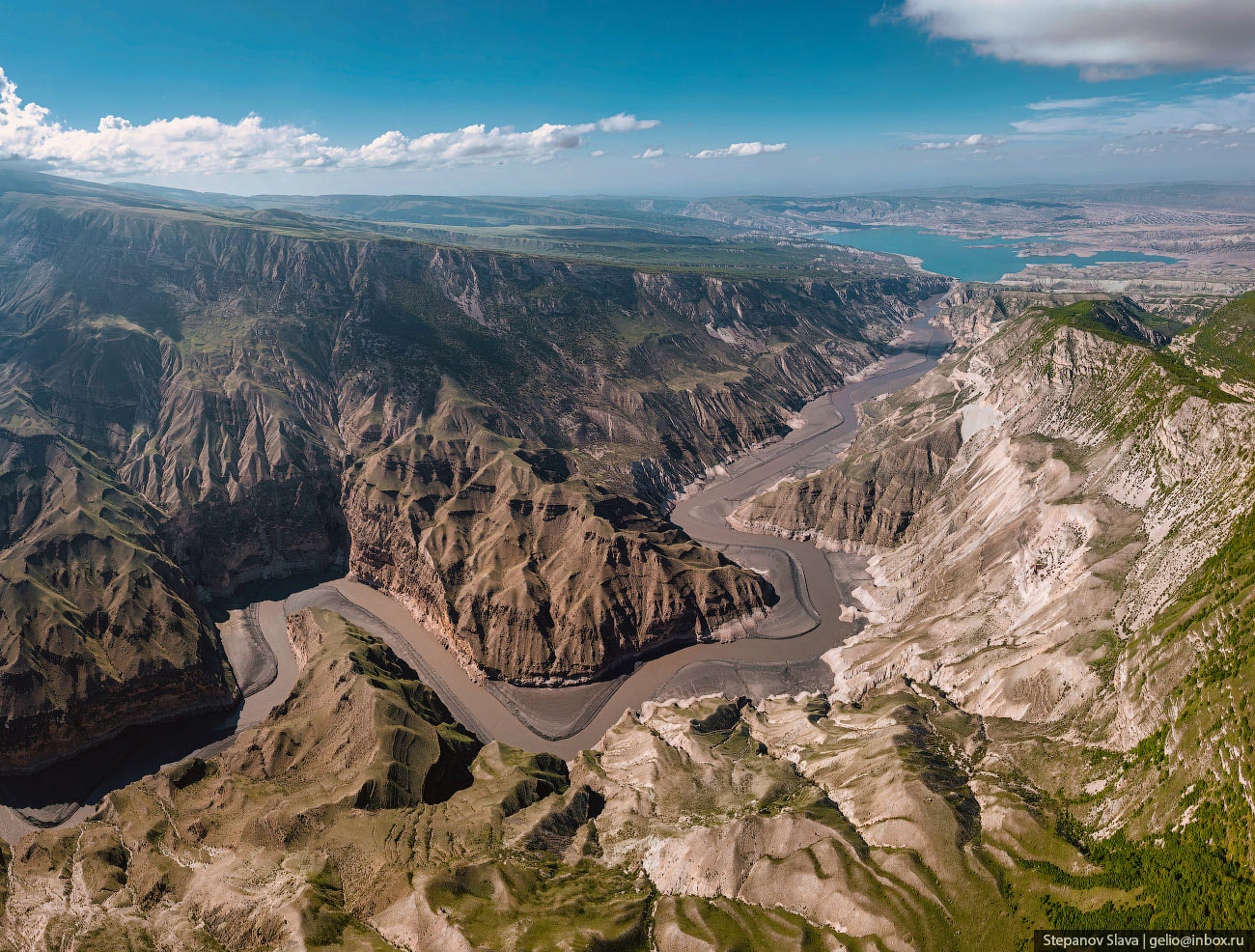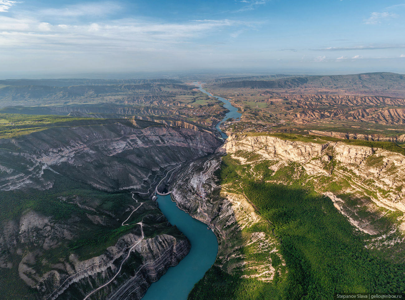 Фотографии и текст Славы Степанова 1. Каньон появился благодаря реке Сулак — самой полноводной в Дагестане. Длина реки почти 170 километров, она начинается в Главном Сулакском каньоне, проходит по всему ущелью длиной 53 км, затем по долине — и впадает в Каспийское море. Река Сулак буквально пробила себе дорогу между Гимринским и Салаватским хребтами — считается, что именно так и появился один из глубочайших каньонов мира. Ущелье начало формироваться ещё в мезозойскую эру, так что у реки было достаточно времени, чтобы вымыть мягкие горные породы и сформировать отвесные скалы каньона. В самом широком месте расстояние между стенами каньона достигает трёх километров, а в самом узком — всего нескольких десятков метров.