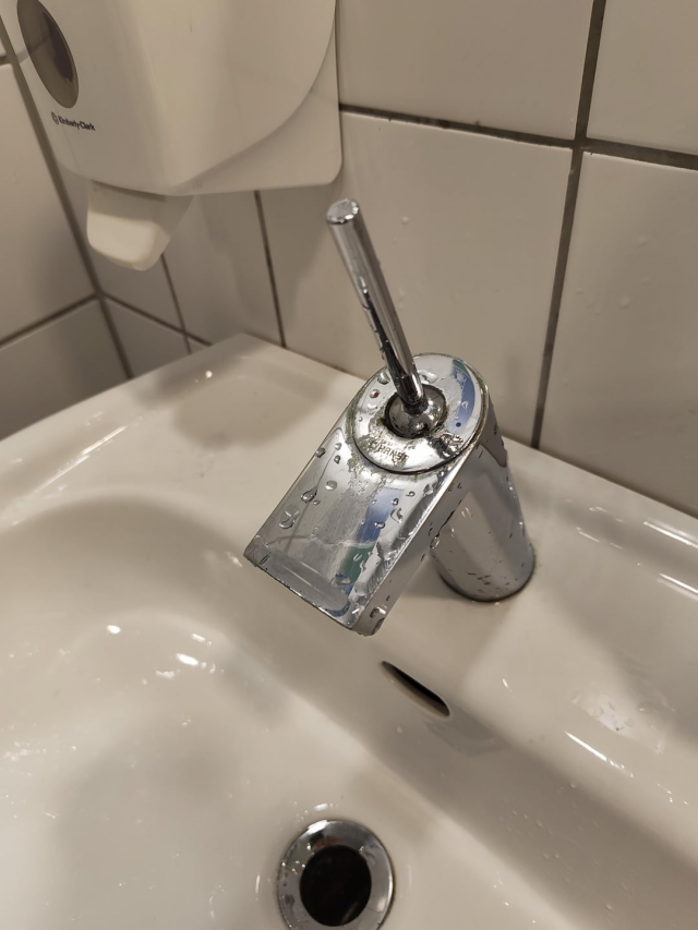 Смеситель, где воду нужно ловить: она выключается, только если поставить рычаг строго по центру
