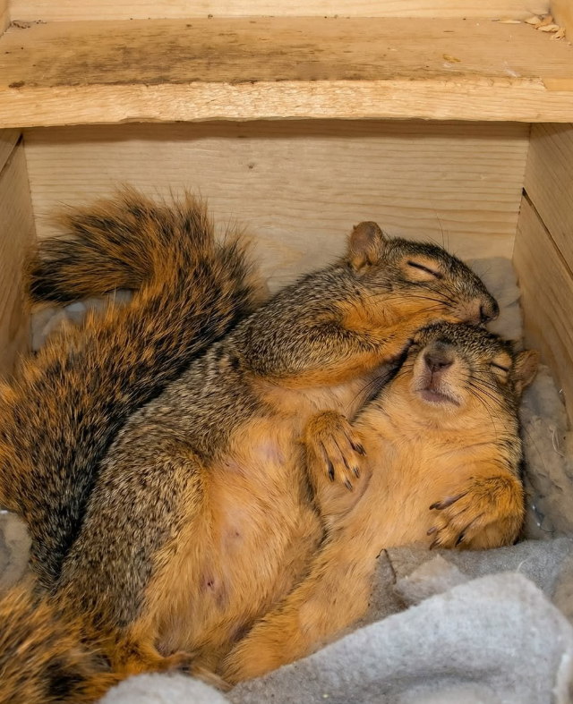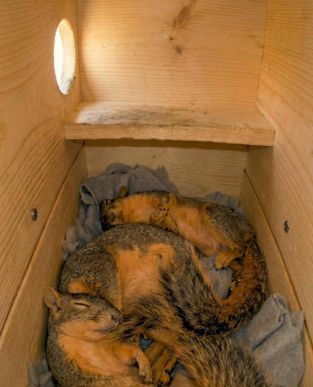 Иногда несколько белок собираются вместе, чтобы согреться: они прижимаются друг к другу и таким образом сохраняют тепло. Этот способ помогает им переживать холодные периоды и экономить энергию зимой.