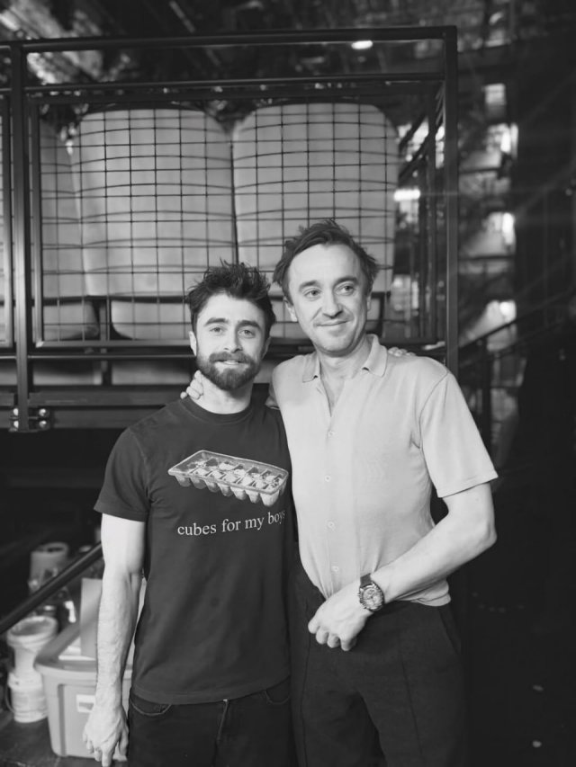 Том Фелтон заглянул на бродвейский спектакль, где главную роль исполняет Дэниэл Рэдклифф. Актёры, знакомые всему миру по фильмам о «Гарри Поттере», пересеклись за кулисами и сделали совместное фото. Эх, время летит… будто тех пятнадцати лет и не было.