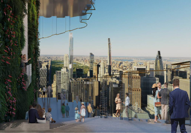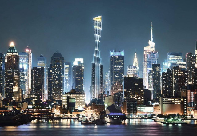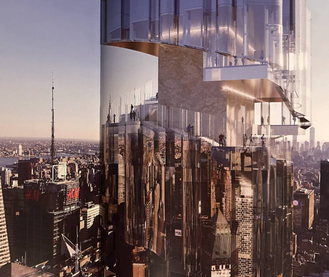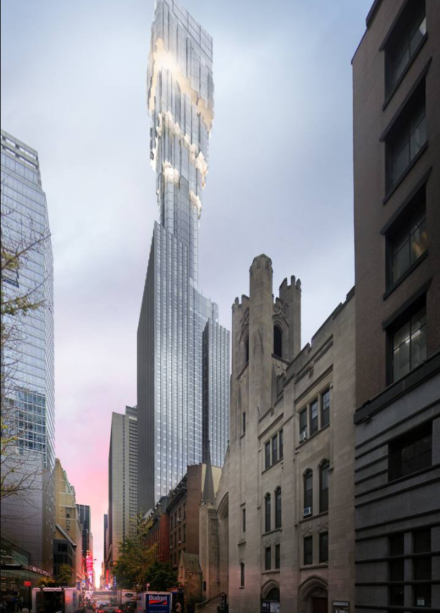 В районе Мидтаун Манхэттена появится еще один нестандартный небоскреб — 325-метровая башня The Torch. Проект высотой 52 этажа возводят на 8-й авеню: внутри разместится гостиничный комплекс примерно на 800 номеров, а также магазины и рестораны. Главная особенность здания — смотровая площадка с аттракционом свободного падения. Посетителей будут поднимать внутри «факела», после чего опускать вниз в прозрачной капсуле. Архитектура башни вдохновлена факелом Статуи Свободы и, как ожидается, заметно изменит силуэт района Таймс-сквер. Завершить строительство планируют примерно к 2027 году.