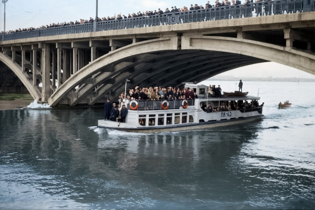 Катание на катере во время разлива реки Воронеж, 1964 год.