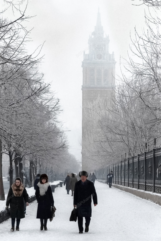 Морозное утро у Первомайского сада, конец 1960-х, начало 1970-х.