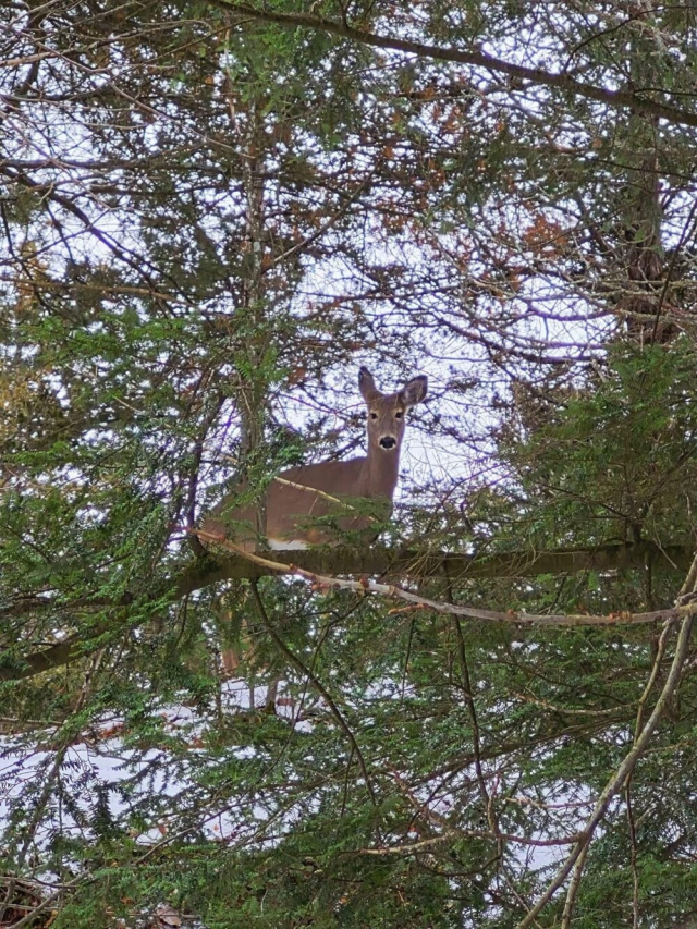 16. Ничего необычного, просто олень, сидящий на ветке