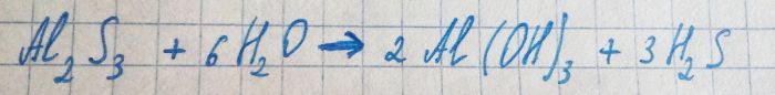 Выделившийся сульфид алюминия сразу же взаимодействует с водой: