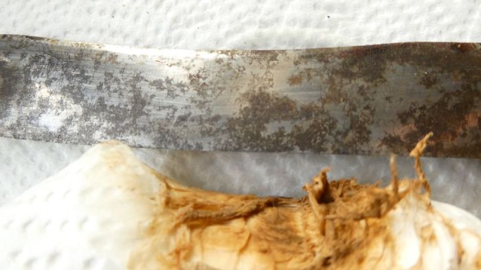 Если столовый прибор сделан не из чистого серебра (например, 800 проба), то ржавеют примеси в сплаве.