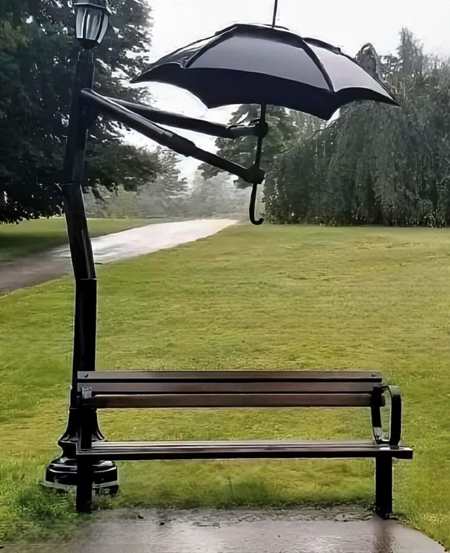 Скамейка с таким вот заботливым фонарным столбом