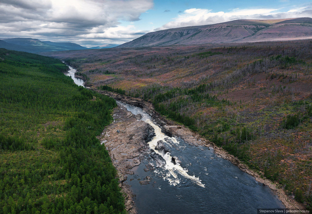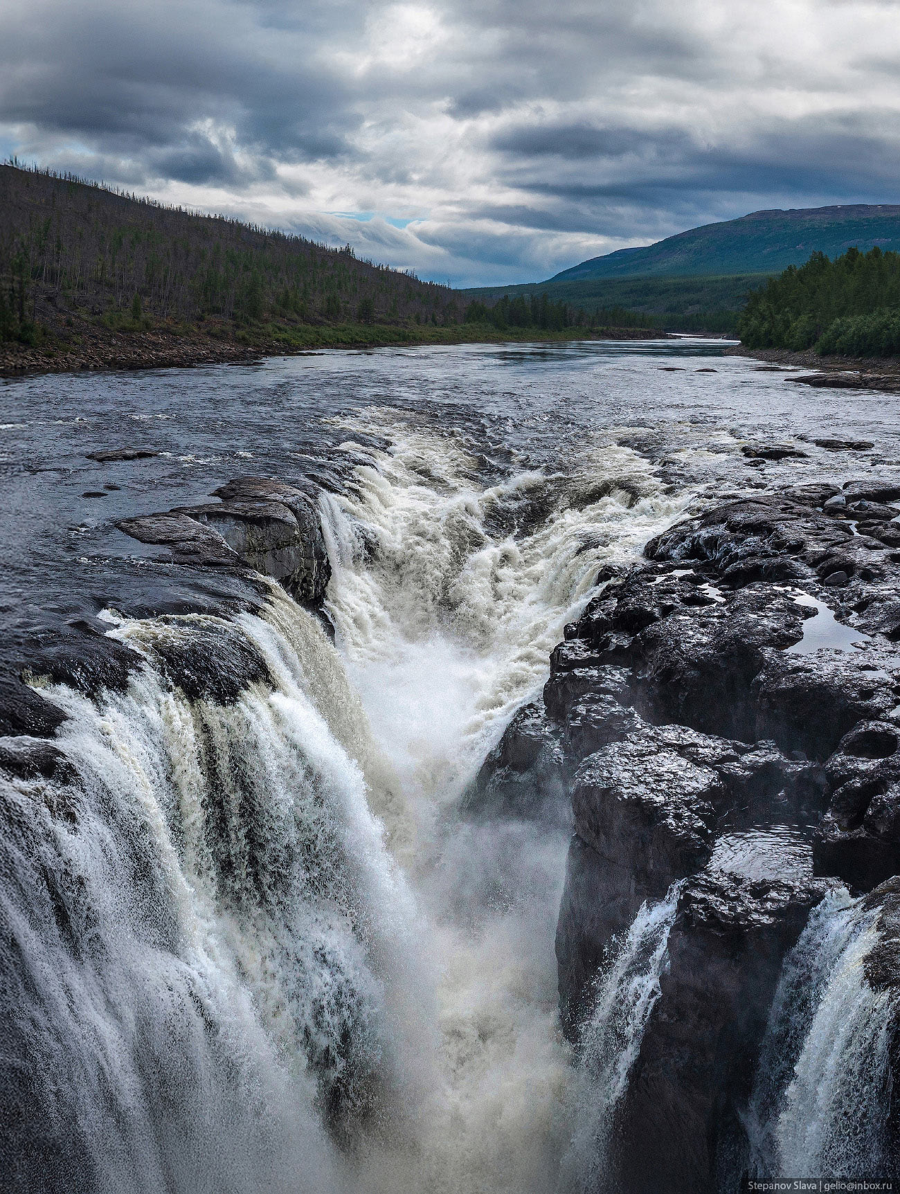 Водопад находится на территории Плато Путорана, на севере Красноярского края. Несмотря на относительно небольшую высоту в 13 метров, его ширина составляет около 100 метров. Большой Курейский является самым мощным водопадом в стране – в период половодья за секунду через него проходит до 1000 м³ воды.