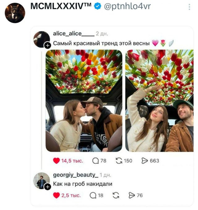 Подборка забавных твитов обо всём 😅 27/03/2026 14:00 Подвезли новую порцию смешных твитов. Самое то, чтобы сделать паузу, отвлечься и немного перезагрузиться. Заходите, листайте и ловите хорошее настроение! Главная / Картинки +1 Admin 0 169