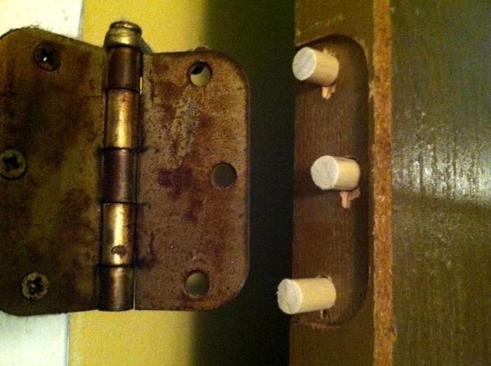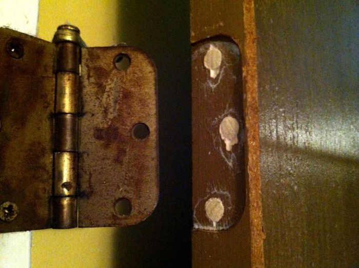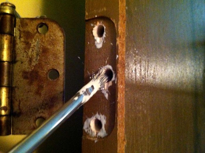 Как восстановить разбитые отверстия под шурупы дверной петли
