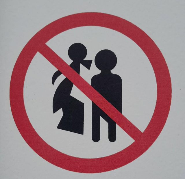 Правильный ответ: никаких публичных проявлений чувств. Такой знак можно встретить в Малайзии.
