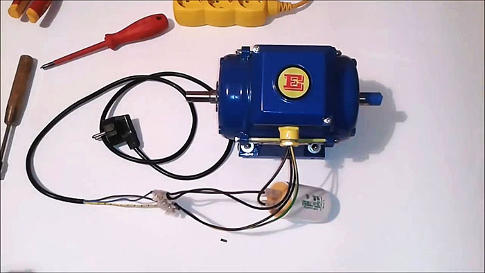Работоспособность схемы можно проверить подключением провода от конденсатора на фазу и включив питание 220. Если все детали исправны, двигатель должен вращать ротор в одну сторону.
