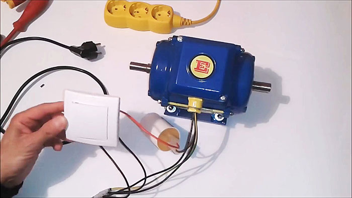 4. Удобно оперативно менять направление вращения, переключая конденсатор с фазного проводника на нулевой. Двухполюсный выключатель подаст питание двигателя.