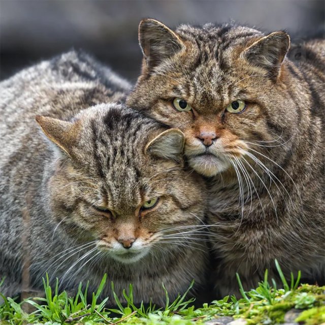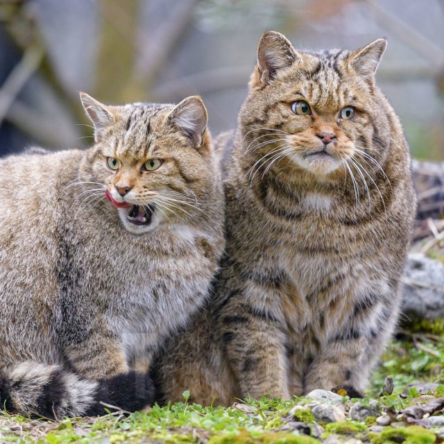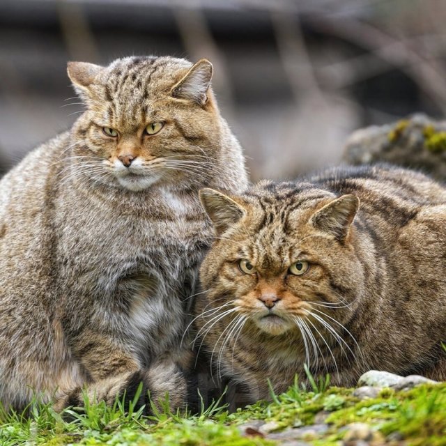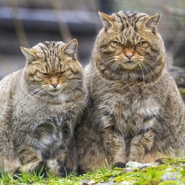 Перед вами настоящие европейские дикие кошки — ближайшие родственники домашних мурлык. Только вот приручить их не получится: это полностью дикий вид. Они не доверяют людям, легко становятся агрессивными и, судя по внешнему виду, могут дать серьёзный отпор любому, кто решит подойти слишком близко.
