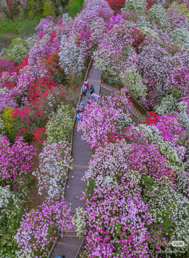 В живописной провинции Гуйчжоу, расположенной на юго-западе Китая, распустилось знаменитое «море азалий» в ландшафтном районе Байли-дуцзюань. Каждый год, с марта по май, здесь цветет крупнейший в мире дикий лес рододендронов, занимающий площадь около 120–125 км². Склоны и долины этого региона окрашиваются в нежные оттенки белого, розового, красного и фиолетового, создавая эффект цветочного океана.