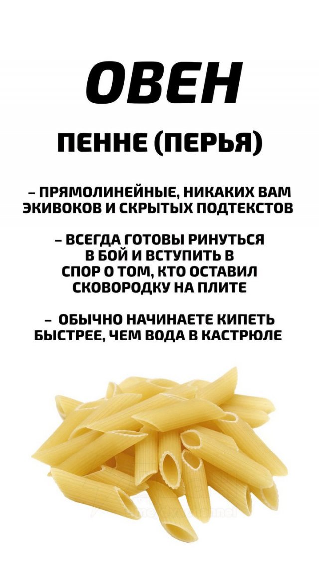 Астрологи, конечно, снова не устояли перед искушением поделиться своим мнением! На этот раз они рассказали, какие макароны идеально подходят каждому знаку зодиака. Ну, как? Совпало?