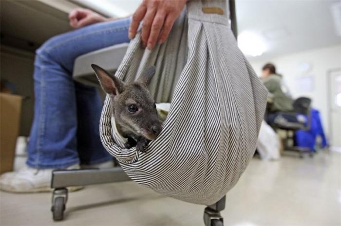 В японском зоопарке Эдогава мать бросила кенгуренка и его по традиции взялись воспитывать смотрители зоопарка. Так что бы вы думали, он мало того что все время в сумке возле своей новой мамашки...