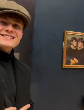 Ребята пронесли «картину» в рамке из LEGO и повесили её… рядом с «Моной Лизой».
