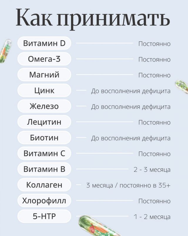 В сети появилась простая и понятная инфографика о приёме витаминов и БАДов.