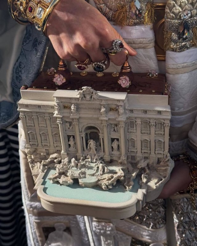 Коллекция Alta Moda F/W 2025 пополнилась арт-объектом, а не аксессуаром — форма вдохновлена фонтаном Треви в Риме. Вот это да, искусство в прямом смысле в руках!