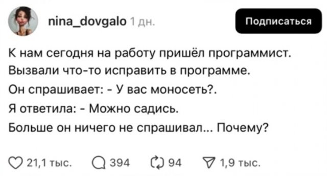 Тредики, мемы, забавные наблюдения и философия на коленке. Всё, что нужно, чтобы отвлечься от рабочих задач. Под кат — заряд позитива.