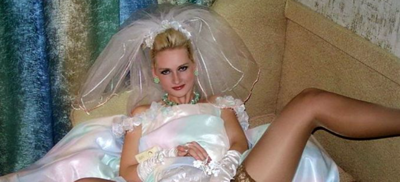 Смотрите как привлекательные невесты без трусов в свадебных платьях демонстрируют свои ухоженные прелести в самых откровенных позах!