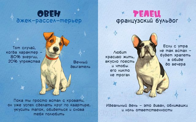 Астролог решил: хватит просто гороскопов — теперь мы все пёсики. Овен — бойцовая, Весы — милый шпиц, Рыбы — вечно витают в облаках, как бордер-колли после ванны.