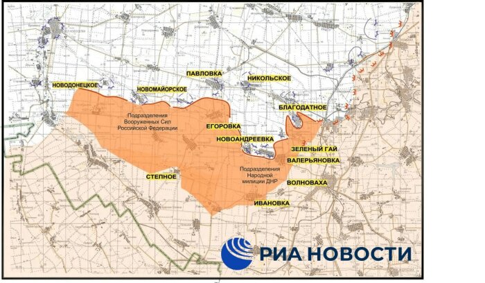 — ВС РФ вышли к населенным пунктам Новодонецкое, Новомайоровское, Павловка и продолжают наступление смежными флангами с группировкой войск ДНР. Продвижение за сутки составило 21 километр.