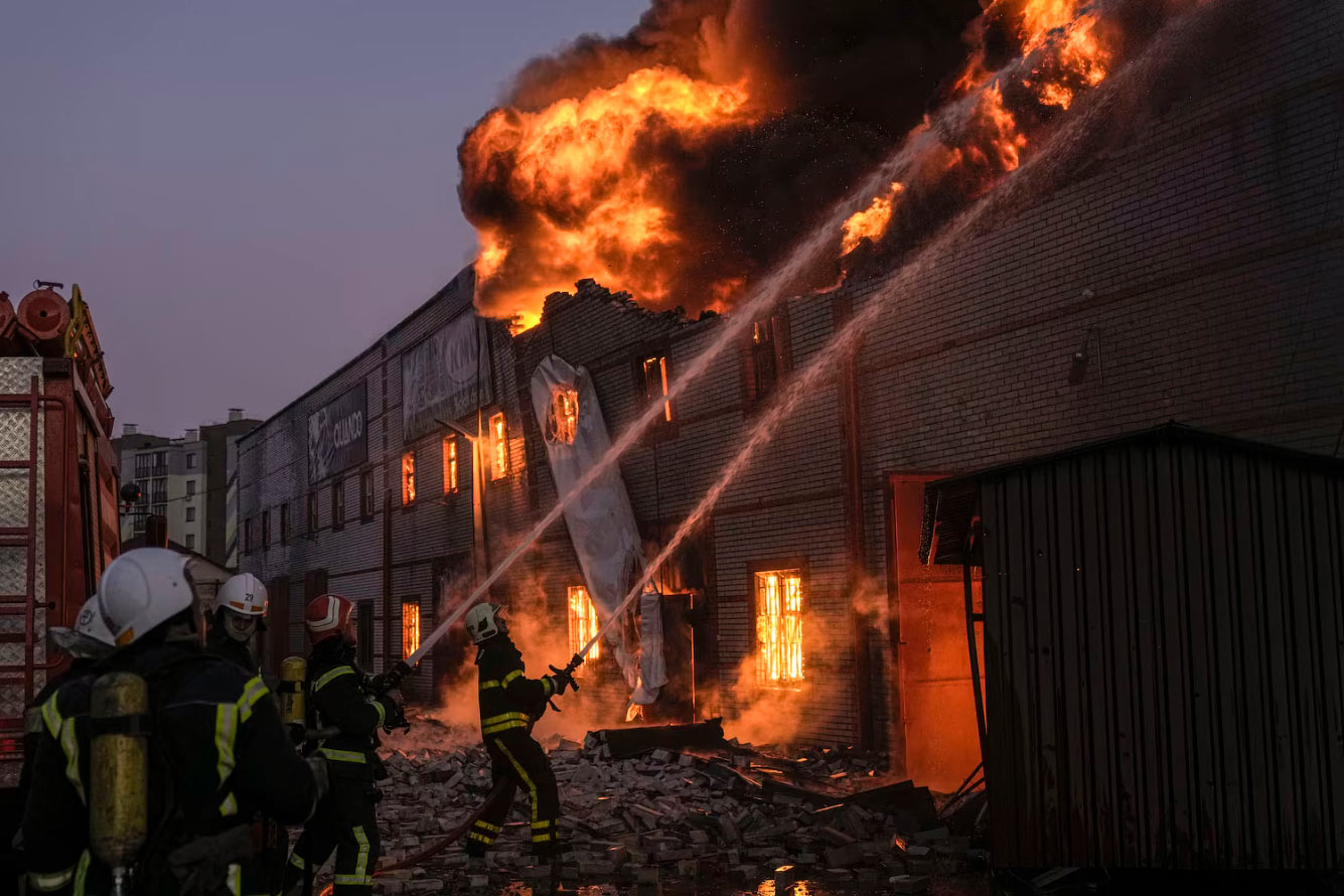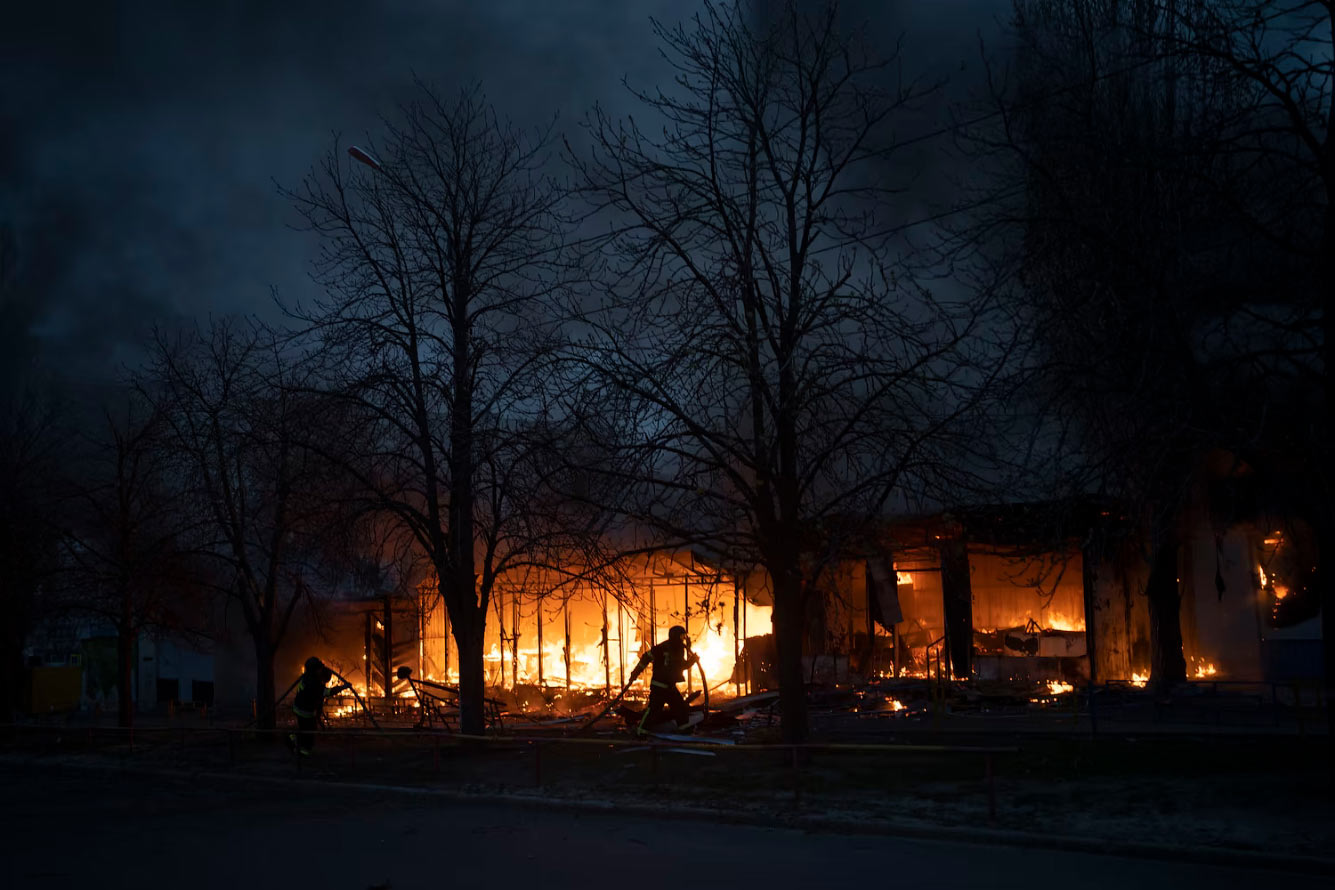 Пожар в Чайковском районе Киева, 24 марта 2022. (Фото Diego Herrera Carcedo):