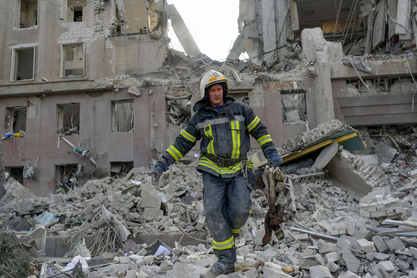 Разбор завалов в Николаеве, 29 марта 2022. (Фото Bulent Kilic):