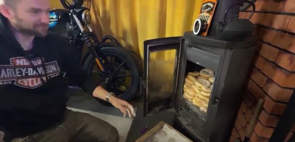 Житель Польши решил подойти к отоплению нестандартно — и топил дом… пончиками. По его расчётам, один пончик содержит около 440 ккал. Если взять 133 штуки, получается примерно 10 кг продукта с теплотворной способностью около 18,5 МДж/кг — почти на уровне древесных брикетов.