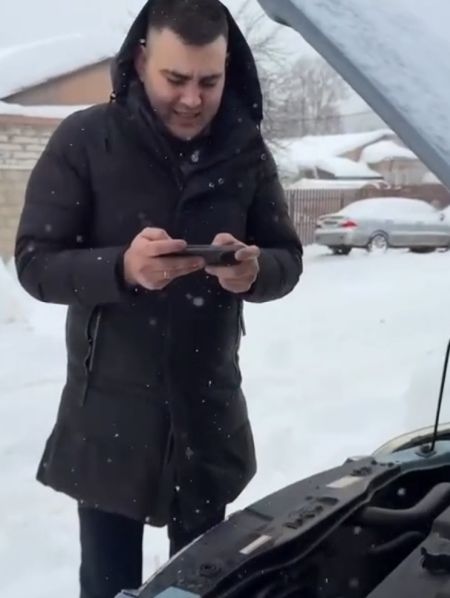Девушка запечатлела момент, когда молодой человек мчится сквозь снежные сугробы, а затем, устав и отчаявшись, усаживается отдохнуть прямо на снегу.