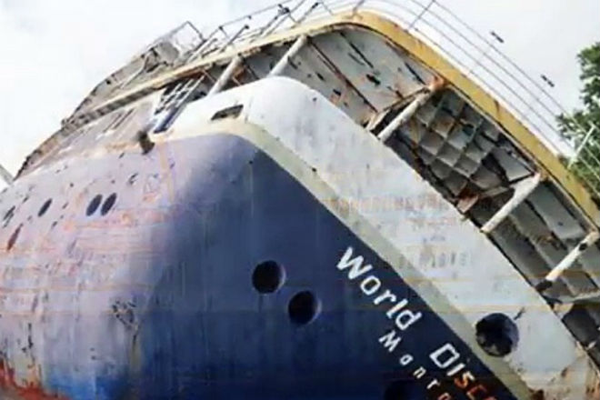 World Discoverer, «Исследователь мира», проектировался для круизов в полярном регионе. Прочный корпус, надежная навигационная система — все это оказалось совершенно бесполезным. Корабль наскочил на не обозначенный на карте риф, получил серьезную пробоину и так и остался на мелководье.